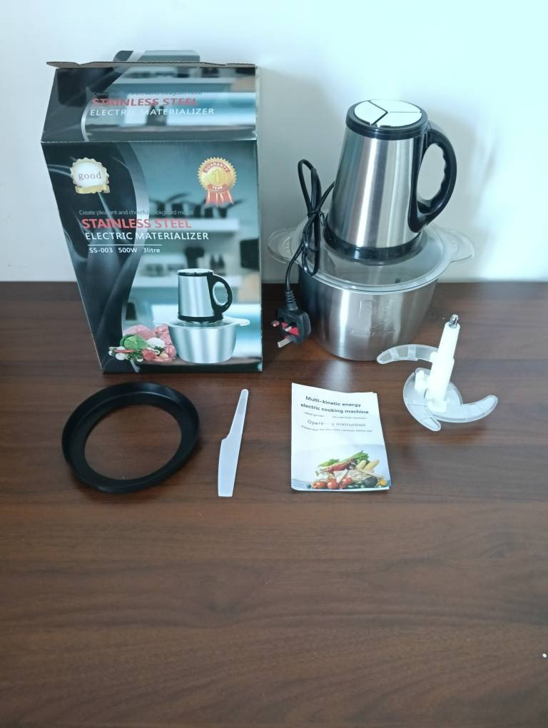 This multifunctional kitchen food chopper is designed for efficiency and versatility, featuring automatic operation, variable speed control, and a pure copper motor. It supports multiple functions such as chopping, mixing, grinding, and slicing with low noise.